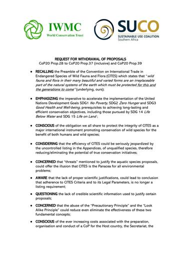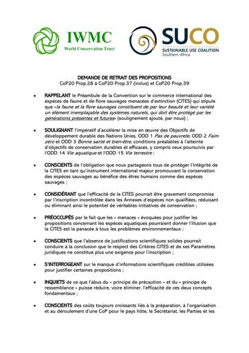 Documents Home » CITES » CiTES CoP20 » CITES CoP20 Joint Recommendations » September 15, 2025 Folder September 15, 2025 Home » CITES » CiTES CoP20 » CITES CoP20 Joint Recommendations » September 15, 2025 » DEMANDE DE RETRAIT DES PROPOSITIONS – 160925 pdf DEMANDE DE RETRAIT DES PROPOSITIONS – 160925 Published on 15 September 2025 Modified on 15 September 2025 By admin 385 downloads Download (pdf, 289 KB) DEMANDE DE RETRAIT DES PROPOSITIONS 160925.pdf Home » CITES » CiTES CoP20 » CITES CoP20 Joint Recommendations » September 15, 2025 » P53 Mirror and mask pdf P53 Mirror and mask Published on 15 September 2025 Modified on 15 September 2025 By admin 423 downloads Download (pdf, 418 KB) P53_Mirror and mask.pdf Home » CITES » CiTES CoP20 » CITES CoP20 Joint Recommendations » September 15, 2025 » REQUEST FOR WITHDRAWAL OF PROPOSALS rev 160925 pdf REQUEST FOR WITHDRAWAL OF PROPOSALS rev 160925 Published on 15 September 2025 Modified on 15 September 2025 By admin 614 downloads Download (pdf, 313 KB) REQUEST FOR WITHDRAWAL OF PROPOSALSrev160925.pdf Home » CITES » CiTES CoP20 » CITES CoP20 Joint Recommendations » September 15, 2025 » SOLICITUD DE RETIRO DE PROPUESTAS – 160925 pdf SOLICITUD DE RETIRO DE PROPUESTAS – 160925 Published on 15 September 2025 Modified on 15 September 2025 By admin 347 downloads Download (pdf, 305 KB) SOLICITUD DE RETIRO DE PROPUESTAS160925.pdf